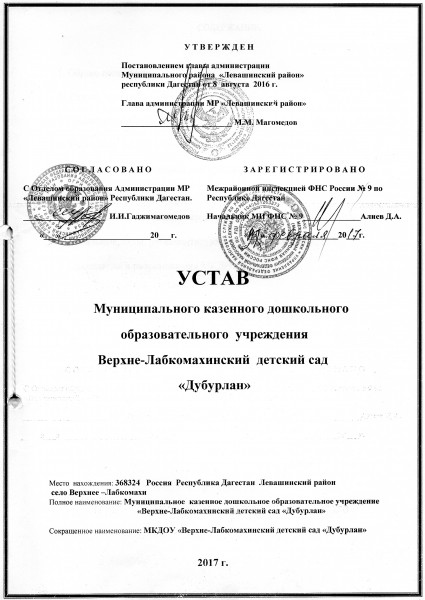 Муниципальное казенное дошкольное образовательное учреждение Верхне-лабкомахинский детский сад "Дубурлан"