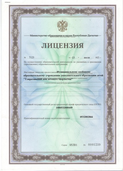 Муниципальное казенное образовательное учреждение дополнительного образования детей "Тляратинский дом детского творчества"