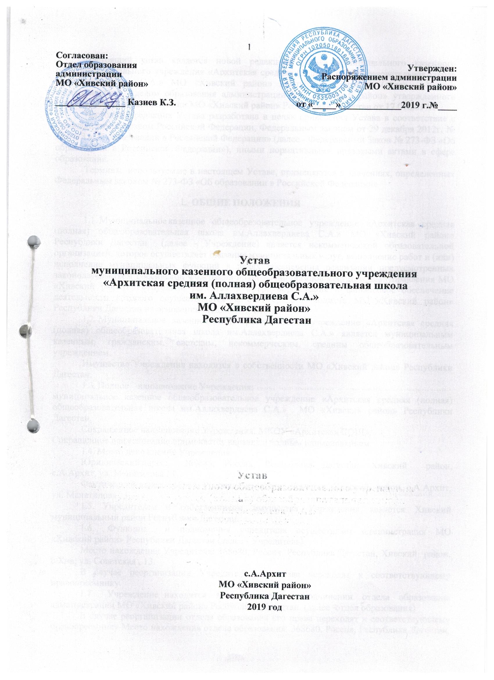 Муниципальное казенное общеобразовательное учреждение "Архитская средняя (полная) общеобразовательная школа им.С.А.Аллахвердиева"