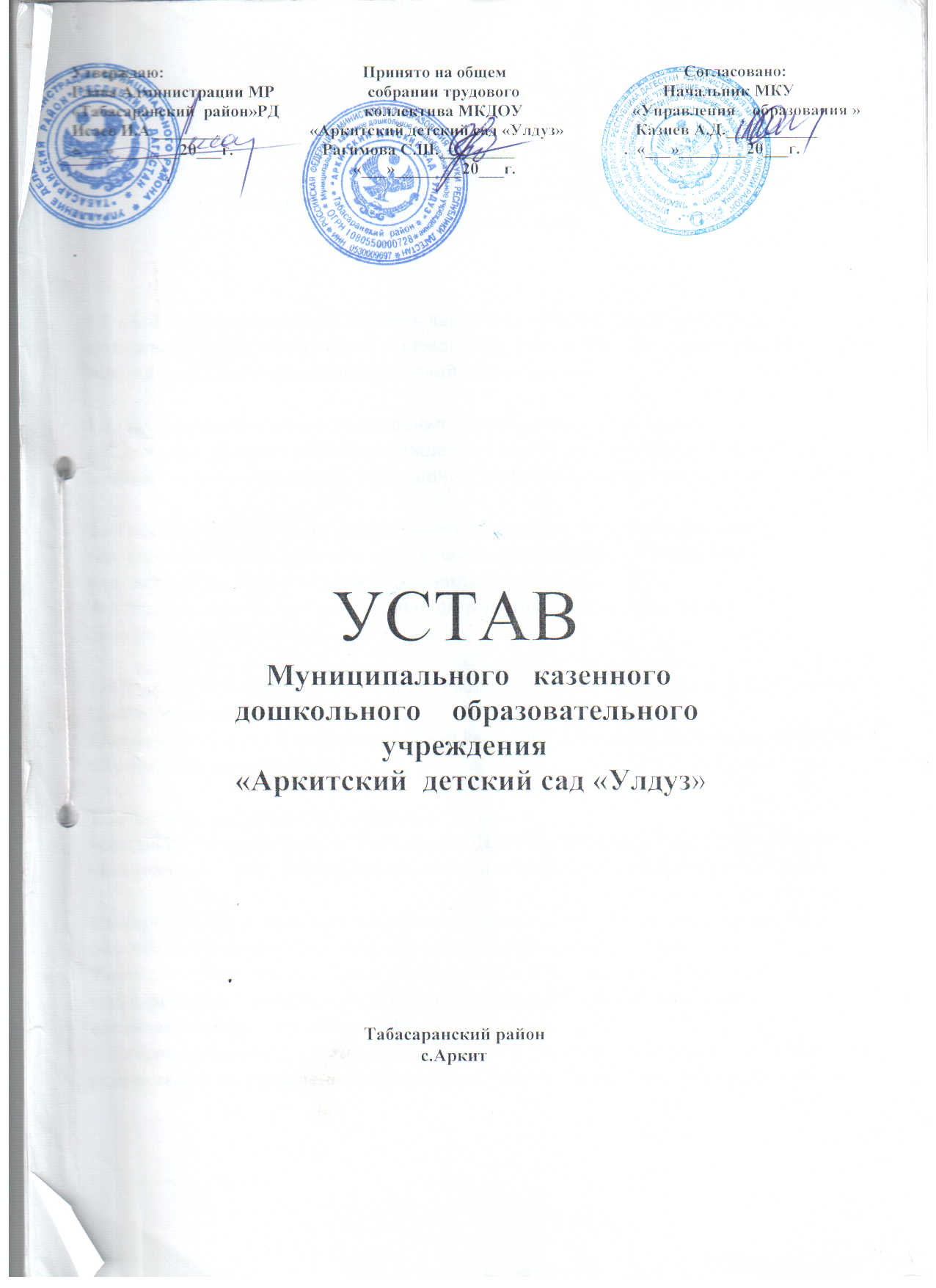 Муниципальное казенное дошкольное образовательное учреждение " Аркитский детский сад "Улдуз"