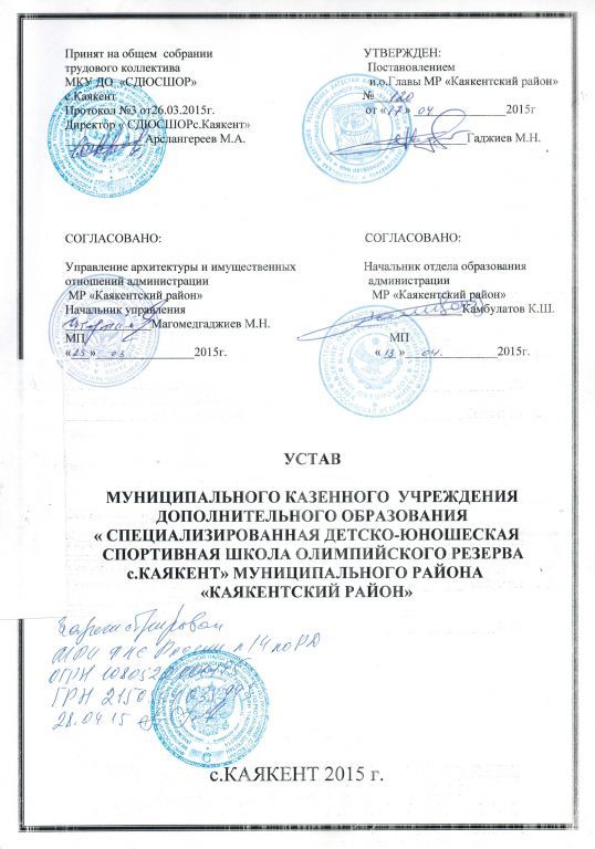 Муниципальное бюджетное учреждение "Спортивная школа олимпийского резерва с.Каякент" Муниципального района "Каякентский район"